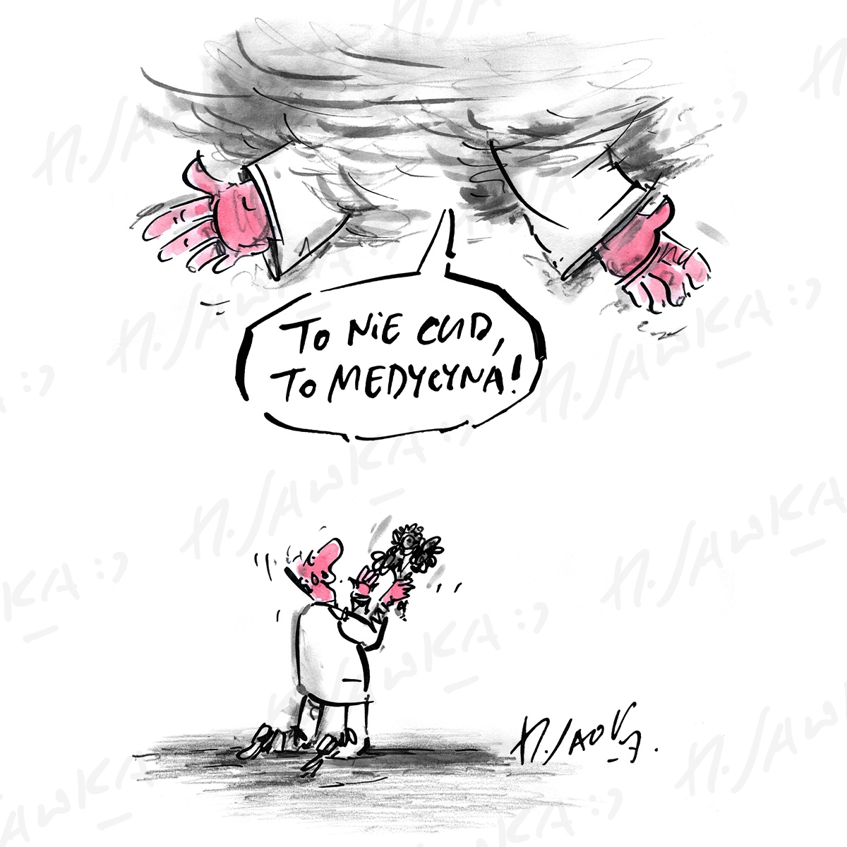 Rysunek satyryczny Henryka Sawki, dostępny w wielu różnych formach.