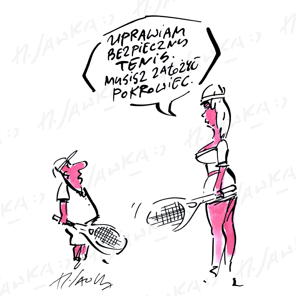 Rysunek satyryczny Henryka Sawki, dostępny w wielu różnych formach.