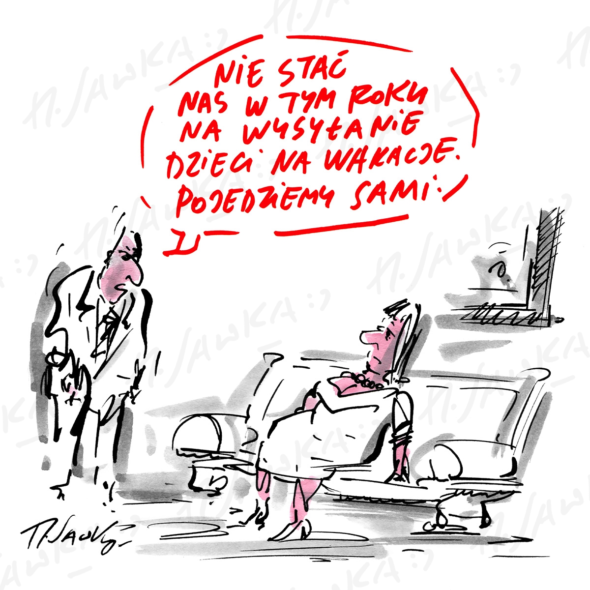 Rysunek satyryczny Henryka Sawki, dostępny w wielu różnych formach.