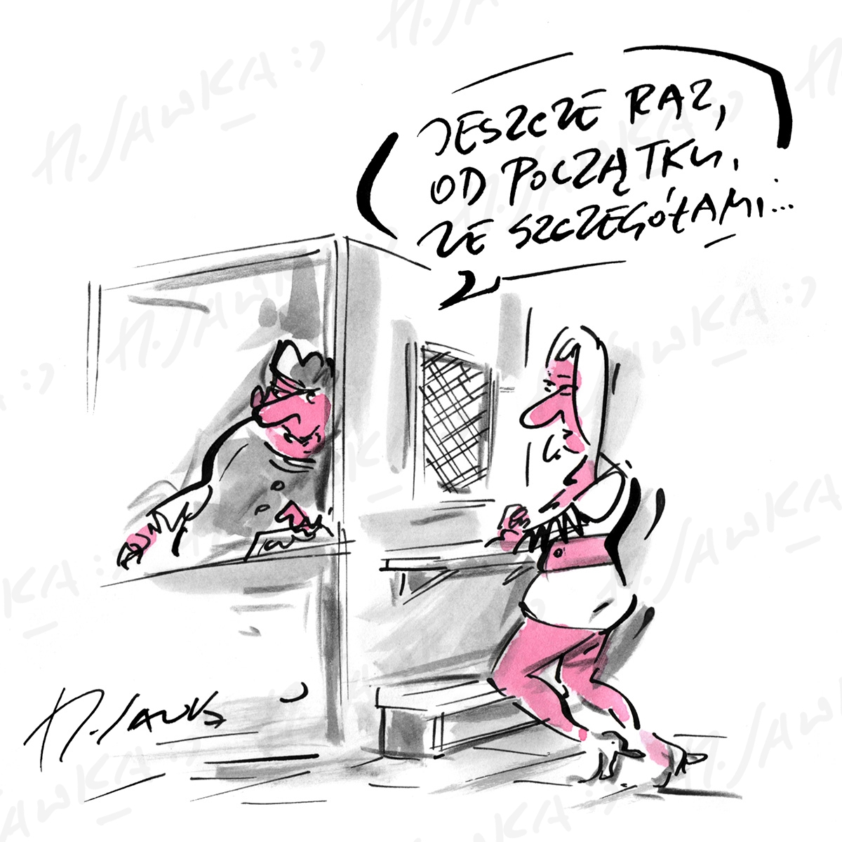 Rysunek satyryczny Henryka Sawki, dostępny w wielu różnych formach.
